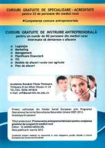 ÎMBUNĂTĂŢIREA CALITĂŢII RESURSELOR UMANE DIN MEDIUL RURAL DIN REGIUNEA VEST PRIN FORMARE PROFESIONALĂ ÎN DOMENII NON-AGRICOLE ŞI FACILITAREA ANGAJĂRII – 2014-2015